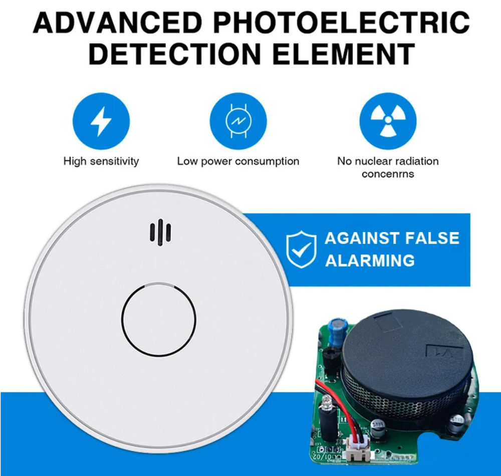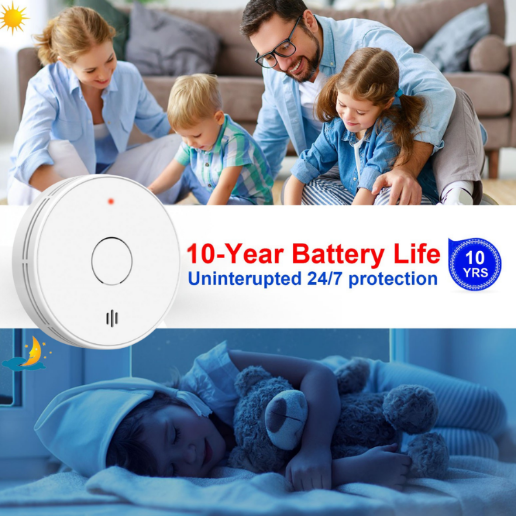 Equipped with a built-in low-consumption lithium battery, this smoke detector provides continuous protection for up to 10 years without needing battery replacements. Enjoy peace of mind knowing your home is safeguarded 24/7—even during power outages.